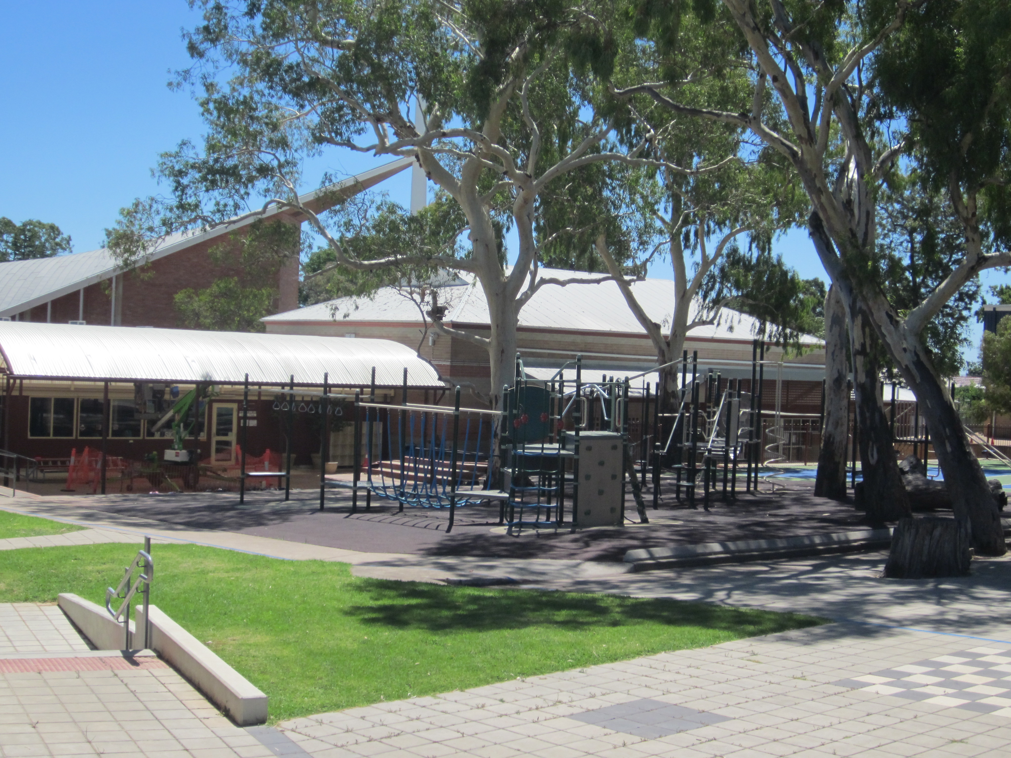 Under the shade of majestic gum trees with its footprint established in a quiet residential community, the original school buildings sit side by side state of the art facilities, including a multi story Junior Primary Learning Centre, Gymnasium and a recently renovated Performing Arts Auditorium.